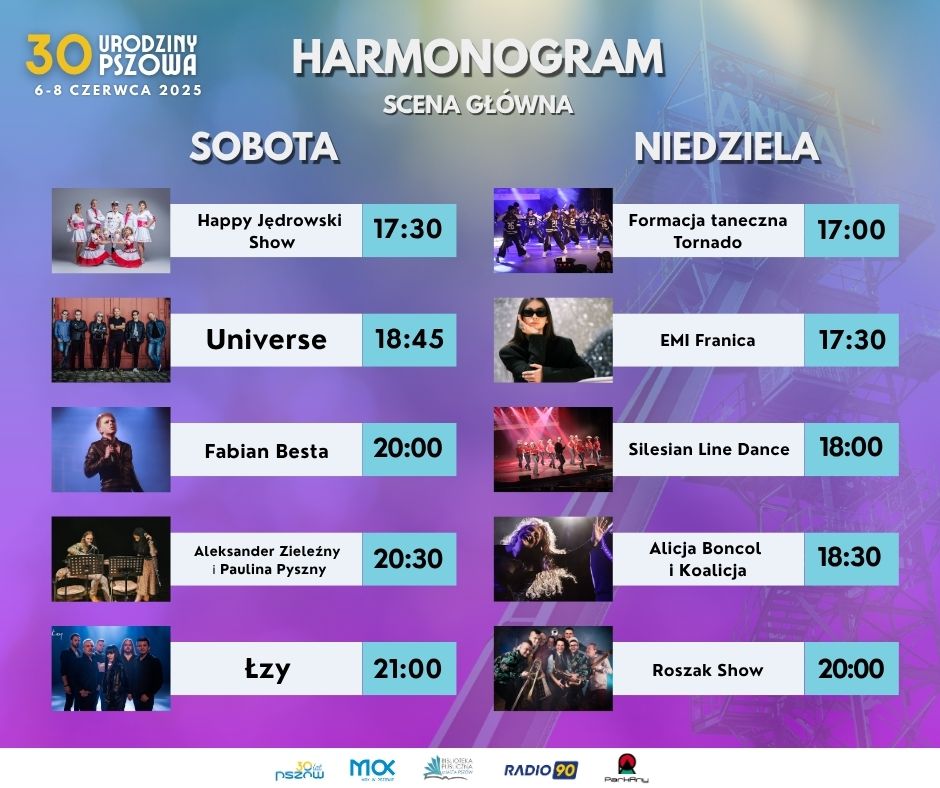 Od 6 do 8 czerwca Pszów będzie tętnić życiem. Z okazji 30-lecia odzyskania praw miejskich miasto zaprasza mieszkańców i gości na wyjątkowe wydarzenie - trzy dni koncertów, pokazów tanecznych i atrakcji dla całych rodzin.